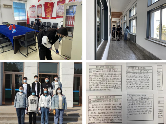 学生第一党支部承担了一号教学楼走廊、楼梯等公共区域的卫生保洁工作,确保驻校教师和自习学生有良好的工作与学习环境。党支部书记江国海根据一号楼的格局,将学生党员、入党申请人、入党积极分子、拟发展对象分组分区,制定详细的工作日程表。 男同学带着水盆、扫把,女同学带着抹布,大家分工合作,对一号教学楼的教室、走廊、办公室以及宣传栏等进行清洁。开展清扫活动的同时,向同学宣传了疫情期间开展卫生“大清扫”行动的重要性,引导学生养成良好的生活习惯、形成文明健康的生活方式。