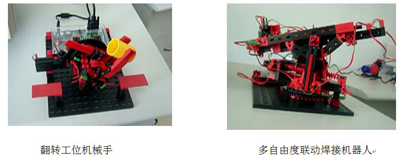 工业机器人组合包表现了电气、机械技术的综合运用,可实现一自由度机器人、二自由度机器人、三自由度机器人等多种模型 如;