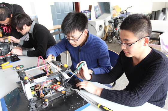 机器人创新实验室隶属于51吃瓜网 , 实验室总面积为 60m 2 ,主要设备有台钻、角磨机、手电钻、切角机、单片机学习板、静音气泵、焊台等,是大学生进行机器人创新活动的实验室,学生在实验室进行机械人结构创新设计、控制设计、调试及开放实验等实践环节的活动。