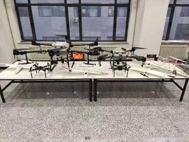 主要设备为一台无人机动力测试系统、一台旋翼无人机试飞测试系统、一架大疆T30无人机(任务载荷30kg)、一架大疆无人机(任务载荷10kg)、34架用于实验教学和飞行技术培训多轴旋翼无人机、2架单旋翼直升机、5架固定翼飞机、一台激光切割机。